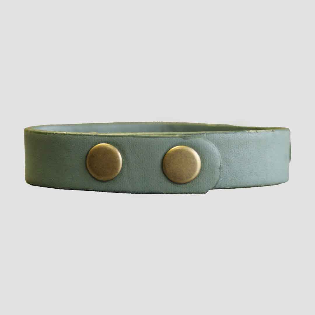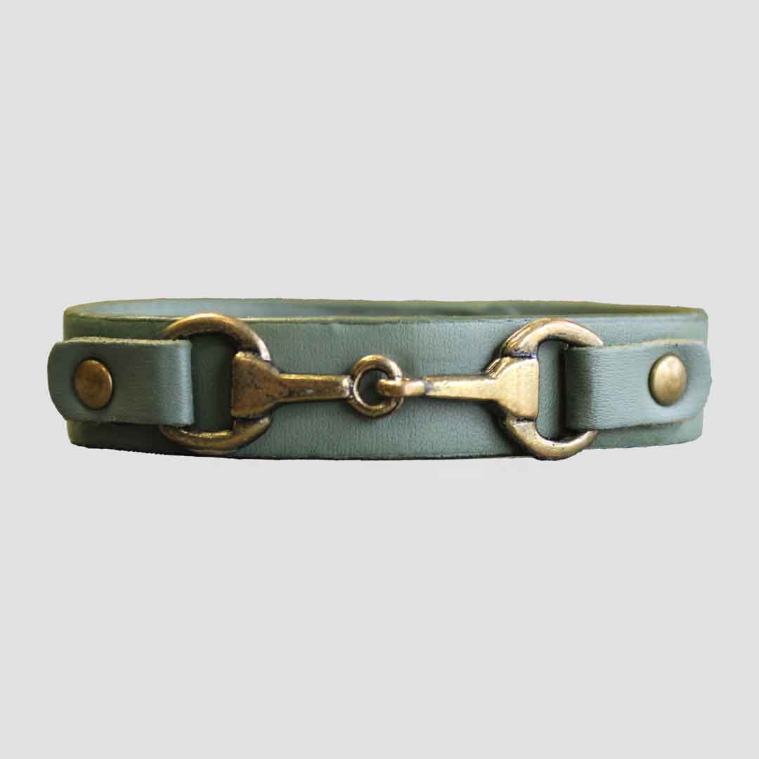 • A lovely light green faux leather bracelet with a Snaffle bit design.